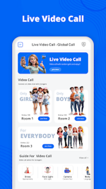 مكالمة فيديو مباشرة - المكالمة العالمية هو تطبيق أندرويد مبتكر مصمم لتسهيل التواصل عبر الفيديو في جميع أنحاء العالم. يتيح هذا التطبيق المجاني للمستخدمين الاتصال فورًا بأشخاص من خلفيات متنوعة دون الحاجة إلى عملية تسجيل. إنه يلبي احتياجات أولئك الذين يتطلعون إلى تكوين صداقات، أو ممارسة اللغات، أو ببساطة الانخراط في محادثات ممتعة. يركز التطبيق على سهولة الاستخدام، مما يجعله متاحًا لأي شخص مهتم بتوسيع شبكة علاقاته الاجتماعية أو استكشاف ثقافات جديدة.